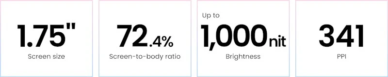 - See what you want, when you want it, thanks to the 1.75-inch display area, which has increased by 14% compared with the previous generation, and boasts a 72.4% screen-to-body ratio that’s among the highest in the smartwatch industry.