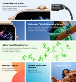 Powerful Zepp OS & App-support | Classic Navigation Crown | 12-day Battery Life