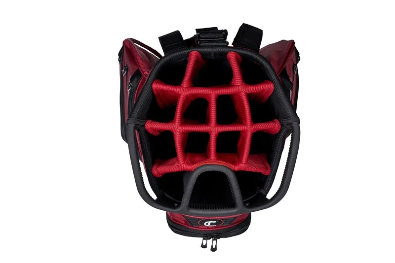 Proprietary 14-way arched top optimizes access to clubs on golf carts and push carts