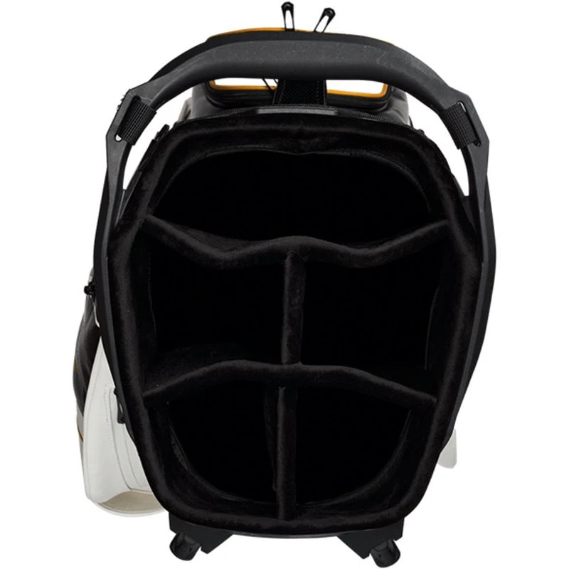 We brought the look and feel of our Tour staff bag to a carry bag featuring a full length apparel pocket, velour-lined valuables pocket, Tour branding, and a logo ready ball pocket.