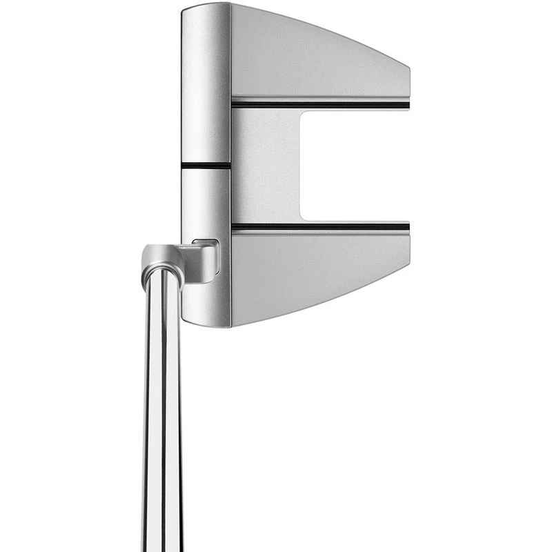 Essentially the shape of a blade putter, the stainless steel face and front section of each putter provides the feel of a blade from the hitting area while the rear aluminum chassis and four tungsten weights positioned deep and low offer the CG and MOI benefits of a mallet.