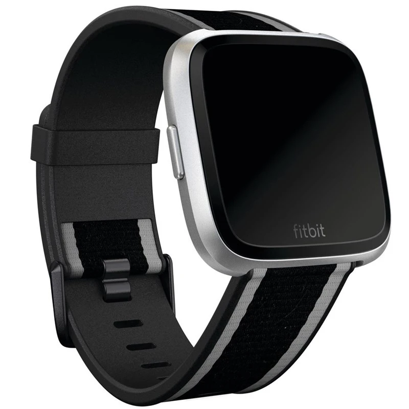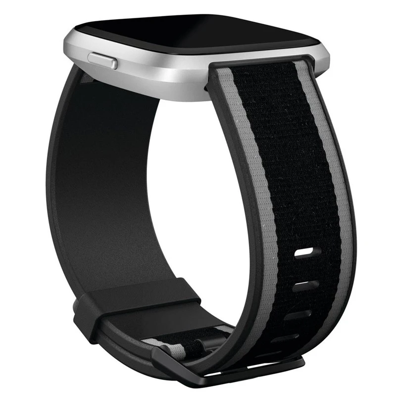 Comfort and style come together with the Fitbit Woven Hybrid Band for Versa Smartwatch. This watchband features a stylish woven polyester on the outside and fluoroelastomer on the interior. The aluminum-buckle closure holds the Versa in place on your wrist.