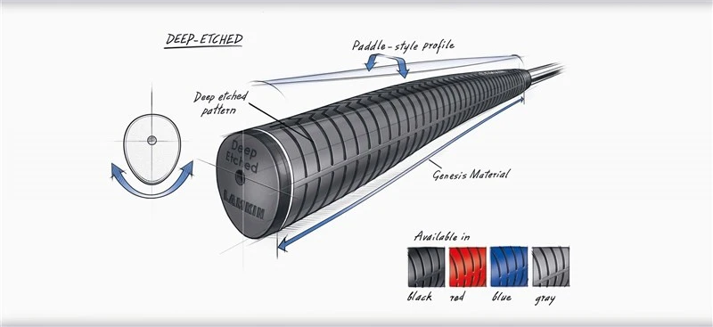 A longtime Tour favorite now features our softer-feeling Genesis Material, enhancing the performance it’s already known for. It’s prominent horizontal etched pattern, traditional paddle, and smaller profile provide maximum responsiveness, while its Deep-Etch design is ideal for golfers with an arc, or arc-to-straight putting style when utilizing a traditional, reverse overlap, or cross-handed grip style.