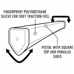 Tour size novel shape helps keep the putter face square at impact, while its subtle pistol shape underside, parallel sides, and square top enhance “down-the-line” stroke control. The polyurethane sleeve design over lightweight under-listing and optimized surface traction deliver incredible feel and performance.