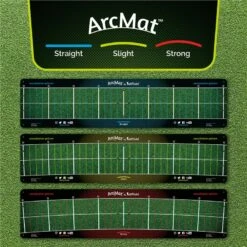 ArcMat’s sweetspot arc, stroke track, numbered face angle lines & setup alignment give complete guidance throughout the stroke whilst the start line gates offer feedback after impact.