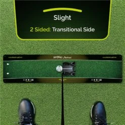 ArcMat’s (Technical side) stroke track contrast gives you a strong visual pathway within which to move your club whilst the sweetspot arc, stroke track & numbered face angle lines give complete guidance throughout the stroke.