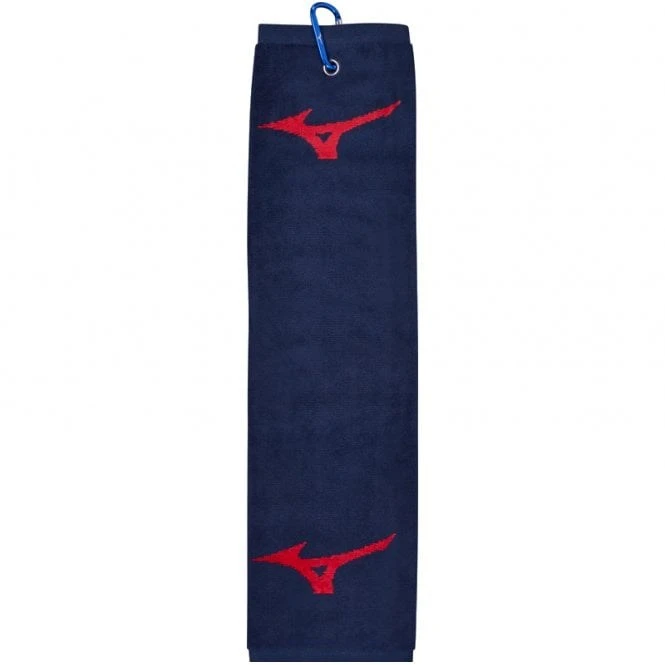 Mizuno Golf Micro Fibre Towel. A premium quality 40cm x 60 towel, made of waffle weave, super absorbent, material. This towel is designed to be draped over the bag. Finished with Mizuno running bird logo. 100% Polyester