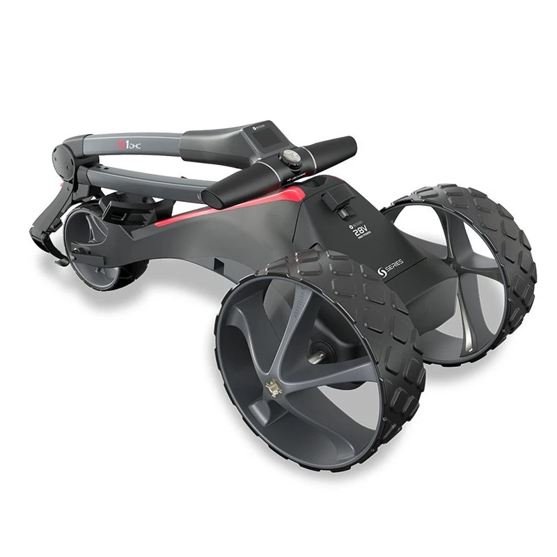 The new S1 DHC (Downhill Control) Electric Motocaddy Trolley gives sporty looks and features all-terrain wheels and an electronic parking brake. Simple 1-step folding is a great feature of the S1, together with all the functionality you could want in a top-quality electric golf trolley. Cable-free battery technology with auto-disconnect and a quick access point for charging on the move are all there for your convenience and to enjoy. The handle also gives the option for USB charging for many electronic devices.