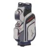 The ALL ELEMENTS cart bag features waterproof fabric and seam sealed throughout with a premium waterproof valuables pocket to keep all of your electronics dry. The ultimate water-resistant premium 15-way moulded WOODE top cart bag, it delivers a better way to organise your clubs and everything else you bring to the golf course by individual sections for all of your clubs and even an extra slot for alignment sticks ora training aid. With superb storage options, seamless integration with push and electric trollies and a range of bold and striking colours, it’s the must have cart bag for 2022.