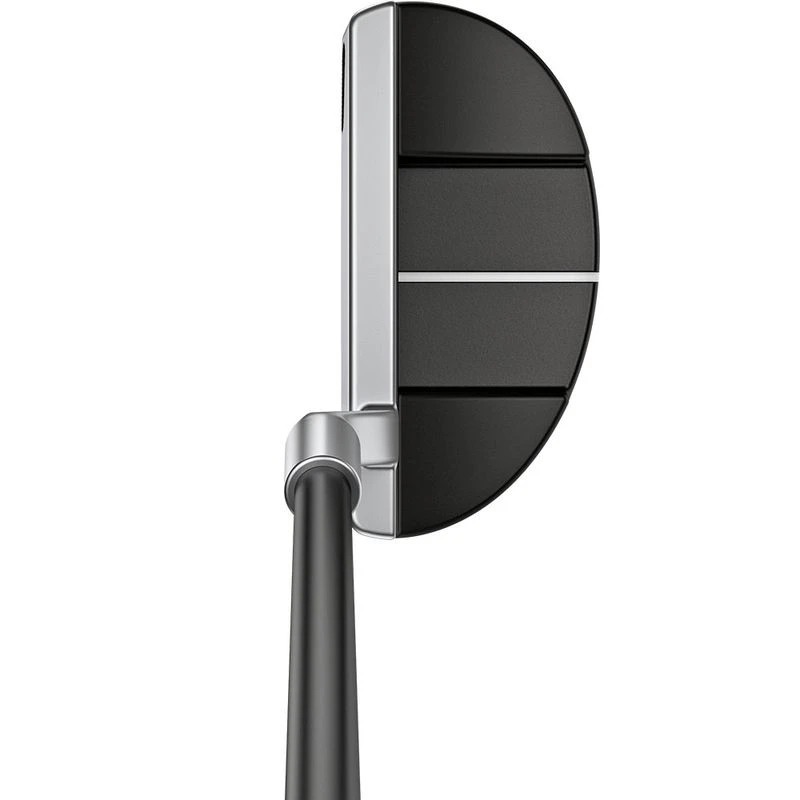 Forgiveness is high in the mid-mallets, aided by tungsten toe-heel weights to ensure stability, while the shallow milled face delivers a firmer feel and consistent ball speed with pleasing acoustics in the Shea Putter. A platinum topline contrasted against a black cavity with its longer alignment line to draw the focus forward, and the ball-width cavity floor helps frame the ball.