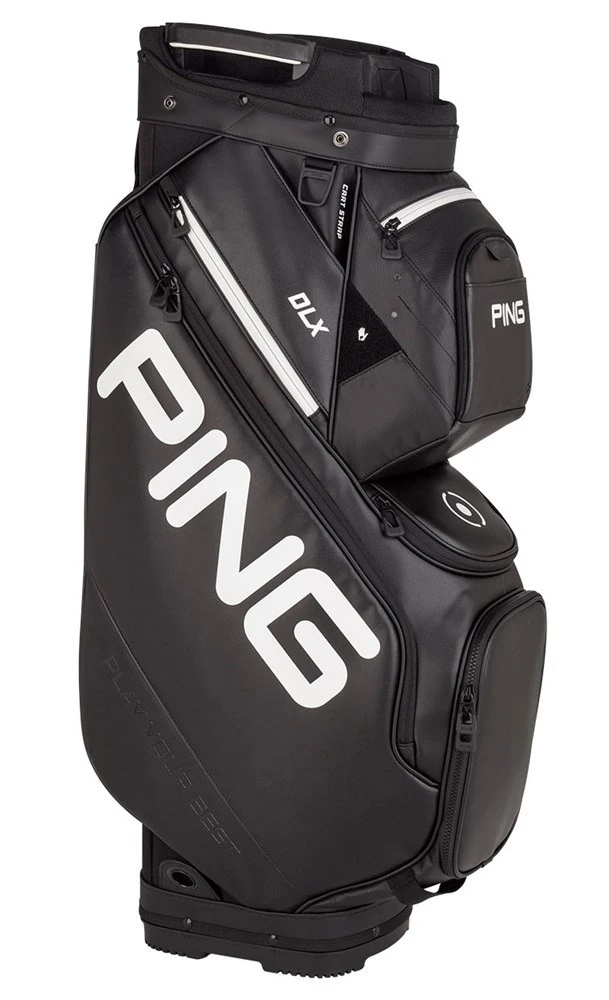 When you have more to store, the robust, fully featured DLX cart bag delivers with 15 pockets, most of any PING bag. Features a 15-way top, too, and two deployable shoe pouches that come in handy for your pre-and post-round shoe change. The high-durability needle-texture vinyl exterior cleans easily and is built for the long haul.