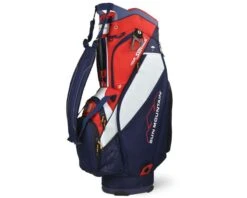 A full-sized, full-featured cart bag, the Tour Series is designed for riding and push cart use. Tour Series has more traditional cart bag styling, is constructed with a combination of nylon and vinyl fabrics and has ten pockets available to organize your gear. Its spacious, four-way top with full-length dividers makes pulling clubs easy.