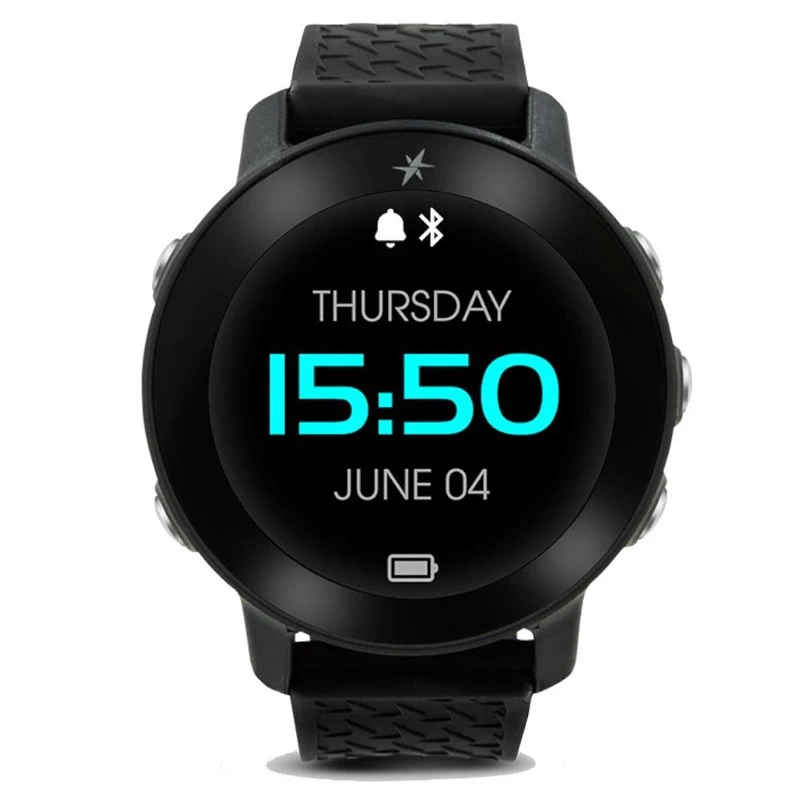 Featuring a sleek black design with brushed metal buttons and a flexible silicone band, you can wear this watch as an everyday timepiece or a wrist-worn GPS device. The glass face is scratch resistant and is also water-resistant (IPX 6). But the most impressive features are what lies within.