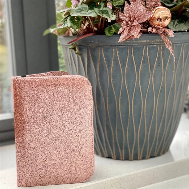 Rose Gold Glitter Large Scorecard Holder with elastic inside to hold the scorecard and pencil.