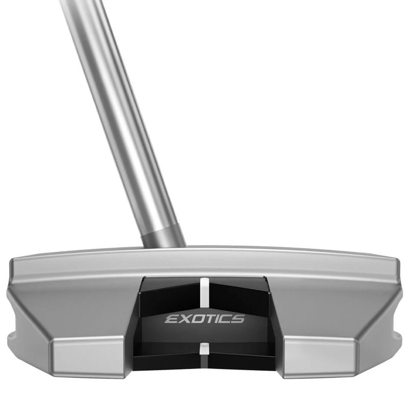 The new Exotics Wingman 700 putter series features brand new designs that offer extreme M.O.I. and are engineered for maximum stability and optimal roll. The three innovative designs provide optimized alignment optics on the revolutionary Lock-On technology alignment aid, as well as improved sound and softer feel from the precision molded TPU insert.