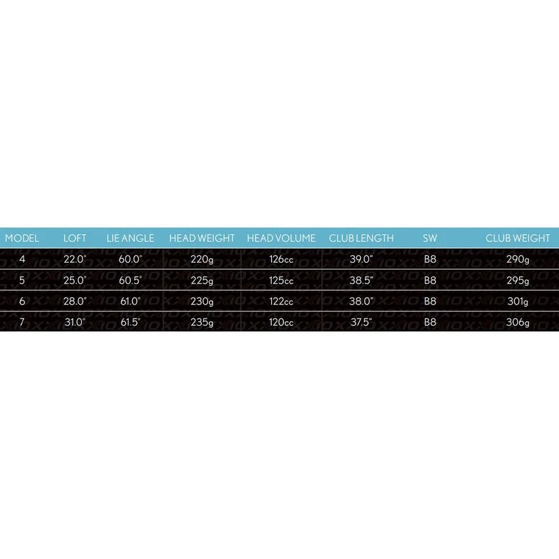 | Club | Loft | Lie Angle | Head Weight | Head Volume | Length | Swing Weight | Club Weight | Flex |
